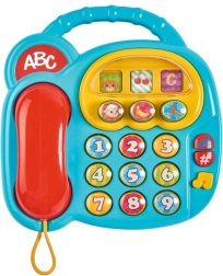 Zabavan i edukativan dječji telefon sa slušalicom koji razvija finu motoriku te uči brojeve, slova, voće i životinje. Pritiskom na tipke reproducira zvukove brojki, melodije i simulira biranje telefonskog broja. Na “zaslonu” se okretanjem pojavljuju nasumične sličice koje potiču znatiželju i igru.