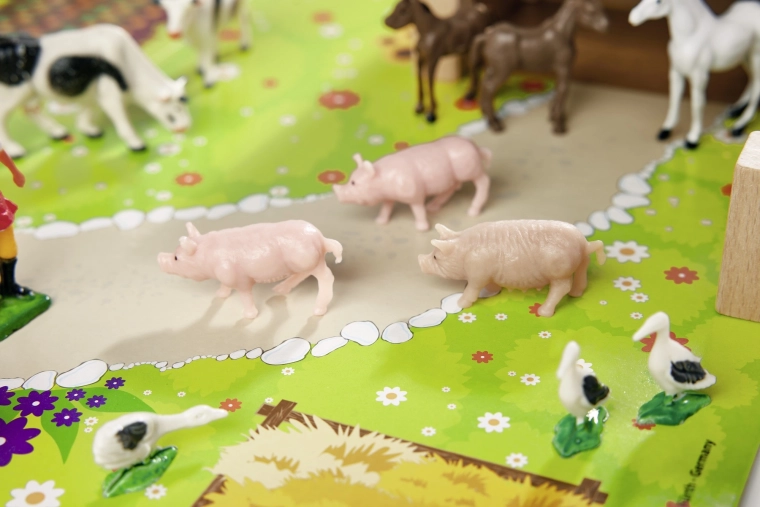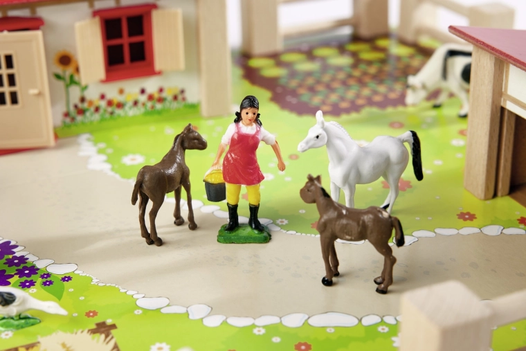 Konje, krave, praščići, guske i skrbnica potiču maštu, uče djecu prepoznavati vrste životinja i razvijaju socijalne vještine kroz igru uloga.