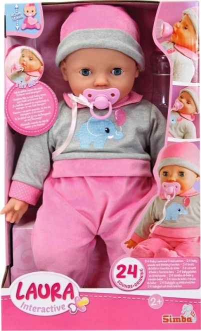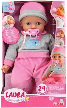 Interaktivna lutka Laura donosi zabavu i brigu djeci s mekim tijelom, zatvarajućim okicama i mogućnošću reproduciranja 24 dječja zvuka. U pakiranju su bočica i duda.
