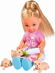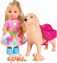Uz ovaj šarmantni set djeca će uživati u satima zabave brinući se o životinjama. Lutkica Evi ima moderan odjevni komplet, a zajedno s mamom psom i trima štencima stvara savršen svijet za maštovite priče. U kompletu su i dodaci koji potiču uloge u igri i učenje odgovornosti kroz igru.