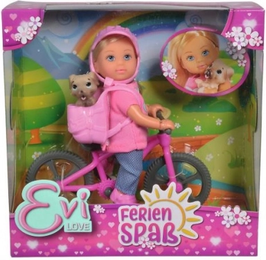 Otkrijte svijet zabavnih avantura s lutkicom Evi koja kreće u vožnju sa svojim psićem. Zahvaljujući praktičnoj kacigi i šarenom biciklu spremna je za sigurnu i veselu igru. Kompaktna visina od 12 cm savršeno odgovara dječjim ručicama i potiče kreativnu igru kod kuće i na putu.