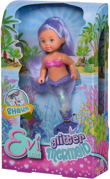 Otkrijte čarobni svijet pod morem s lutkom Evi Love u obliku morske sirene. Njezin je rep ispunjen šljokicama koje se nakon protresanja prekrasno zavrte i stvaraju blistav efekt. Zahvaljujući kompaktnoj visini od 14 cm, lutkica dobro pristaje i manjim dječjim rukama te je odlična za put.