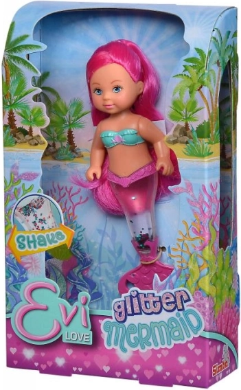 Preslatka lutkica Evi Love kao morska sirena očarat će djecu sjajnim repom koji se nakon protresanja ispuni blještavim šljokicama. Idealna za maštovitu igru i sakupljanje. Visina lutke je 14 cm. Šaljemo nasumičan odabir od 3 varijante, cijena je za 1 komad.