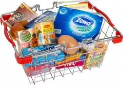 Ova slatka, ali čvrsta metalna košarica za kupovinu SMALL FOOT odličan je dodatak svim dječjim trgovinama i kuhinjama. Do vrha je ispunjena plastičnim maketama poznatih namirnica i proizvoda za svakodnevnu upotrebu, tako da djeca mogu realistično vježbati kupovinu, razvrstavanje i posluživanje. Odabir isporučenih maketa je promjenjiv, pa svako pakiranje može ponuditi drugo iznenađenje.