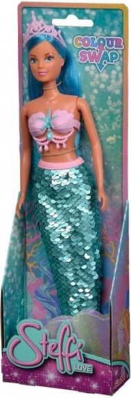 Lutka Steffi Love Morska Vila idealna je za sve ljubitelje fantastičnih igara. Ovaj čarobni model ima rep od šarenih pailleta koje mijenjaju boju i zasigurno će pružiti sate zabave i mašte.