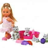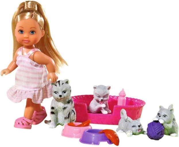 Set sadrži lutkicu s dugom plavom kosom i modernom ružičastom haljinom. U kompletu su i preslatke igračke mačića koje inspiriraju na igre brige i njege.