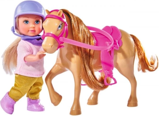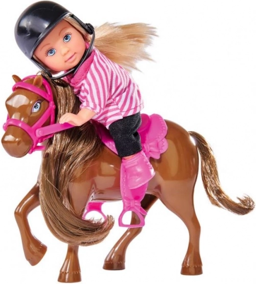 Lutka EVI nosi elegantnu odjeću i dodatke koji ističu njezin jahački šarm.