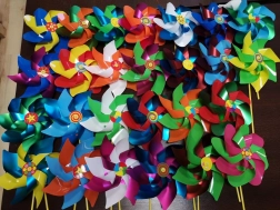 Vjetrenjača u raznim bojama, šaljemo nasumično. Velika vjetrenjača (miks boja) za dječju radost, izmamiti će osmijeh na svako dječje lice. Prikladna za igru kod kuće i kao dekoracija u vrtu ili u teglama za cvijeće. Poboljšana kvalitetna konstrukcija za dugotrajnu funkcionalnost. Osovina je opremljena dodatnim cjevastim kućištem koje osigurava dugotrajno okretanje. Vjetrenjača je proizvedena u EU. Ukupna duljina s štapom iznosi 50 cm. Glavne značajke: ukupna duljina sa štapom 50 cm, prikladna dekoracija za dom i vrt.