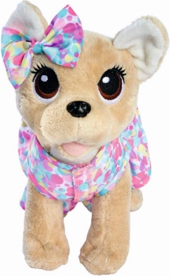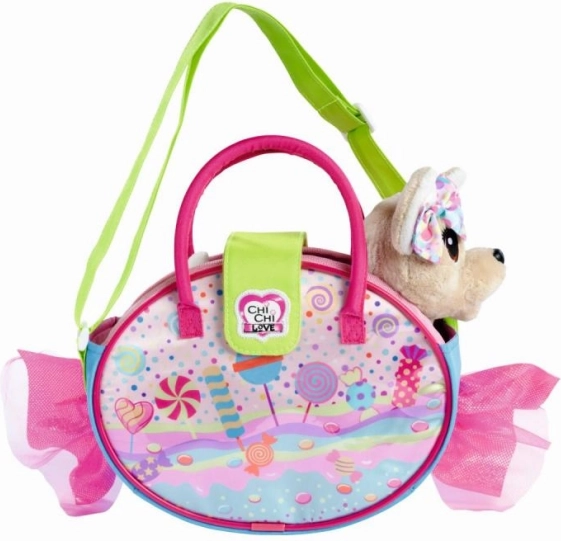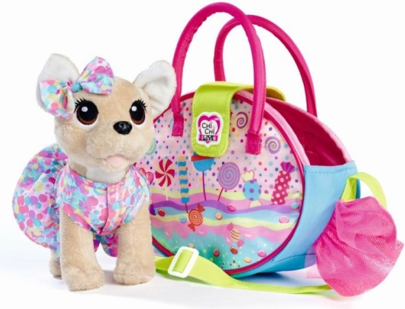 Ovaj šarmantni set spaja modni dodatak i mekog plišanca: šarena torbica sa slatkim motivom krije preslatkog psića chihuahuu, kojeg se može u svakom trenutku izvaditi i koristiti zasebno za igru. Zahvaljujući naramenici djeca svog ljubimca mogu udobno ponijeti posvuda sa sobom.