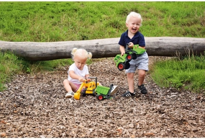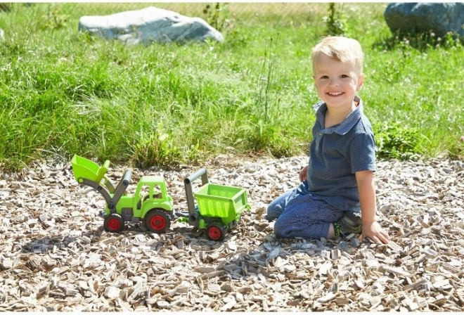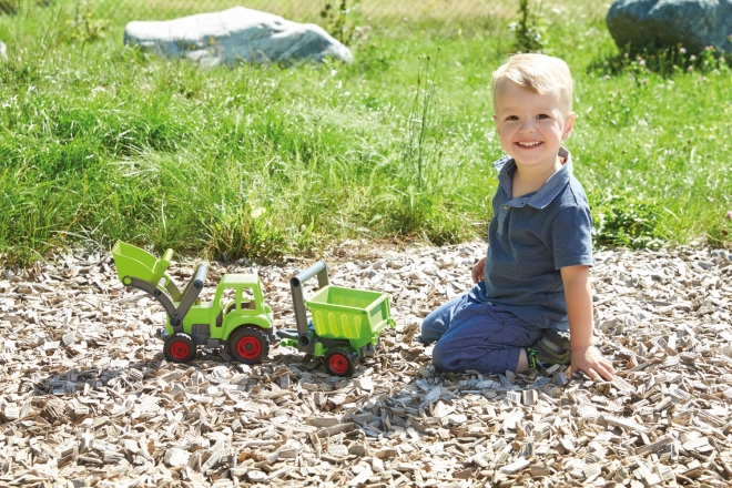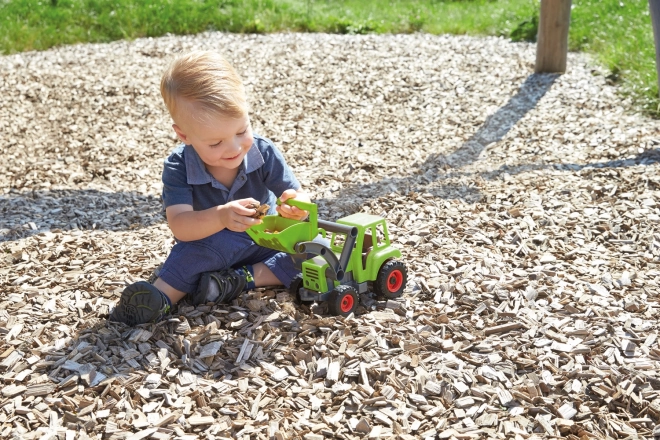 Traktor LENA ECO donosi zabavu i odgovornost prema prirodi. Zahvaljujući robusnoj izradi od recikliranih materijala i primjesi drva, izdržljiv je i siguran za male vozače. Prednji utovarivač je u potpunosti funkcionalan i omogućuje nabiranje i presipanje materijala, što potiče finu motoriku i kreativnu igru.