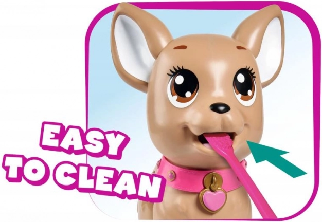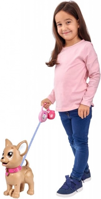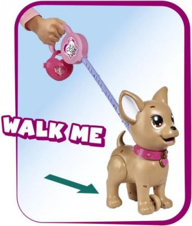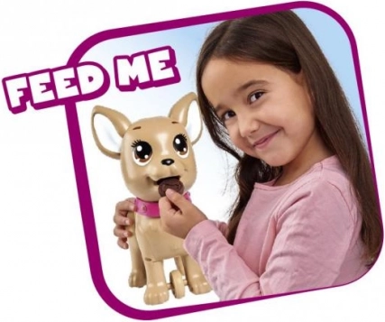 Preslatki interaktivni psić čivava iz kolekcije CHI CHI LOVE uči djecu brizi o ljubimcu na zabavan način. Nahranite ga modelinom, krenite u šetnju i laganim pritiskom na povodac napravit će hrpicu. U kompletu su povodac, modelina, kalup i kutijica u obliku srca s vrećicama za lakše čišćenje. Veličina psića je približno 20 cm.
