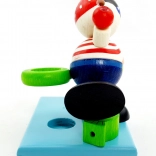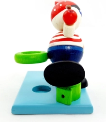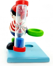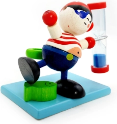 Motivirajte djecu na redovito pranje zubi na zabavan način. Drveni gusar s pješčanim satom s plavim pijeskom pouzdano mjeri preporučene 2 minute, dok integrirani držač za četkicu održava kupaonicu urednom.