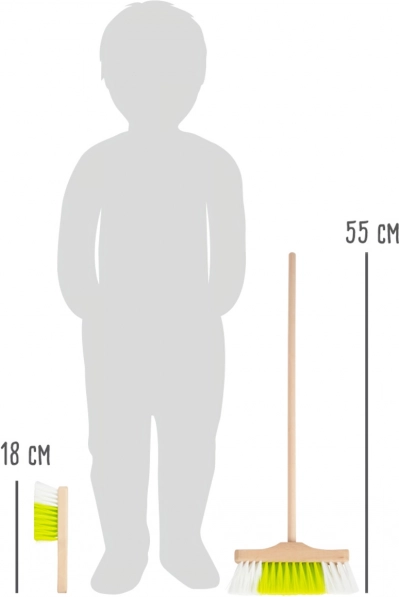 Metla duljine 55 cm i metlica 18 cm savršeno leže u dječjoj ruci, pa se njima lako rukuje i čišćenje je djeci prirodno i zabavno.