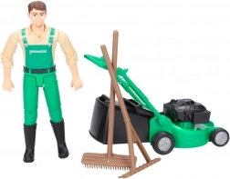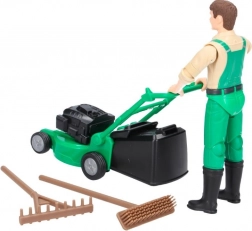Set BRUDER BWORLD vrtlar s kosilicom donosi djeci realističnu igru njege travnjaka. Figurica ima zglobne udove i ruke prilagođene čvrstom držanju alata, pa može lako gurati kosilicu, grabljati ili mesti.