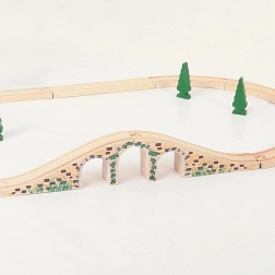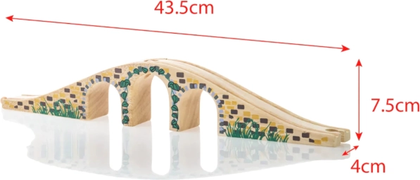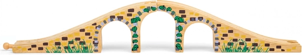Ovaj stilski trostruki most savršen je dodatak svakoj drvenoj željezničkoj pruzi. Zahvaljujući realističnim detaljima kamenih cigli i glatkoj površini, vašoj će pruzi dodati visinsku raznolikost i vizualnu privlačnost. Omogućuje da vlakovi prolaze iznad i ispod mosta, stvarajući zabavne scenarije za igru.