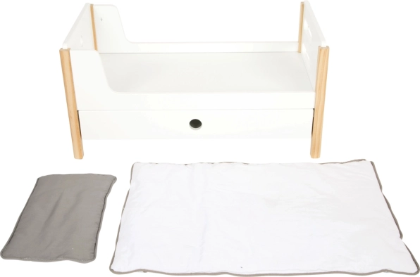 Ovaj kvalitetni drveni krevetić za lutke u modernom nordijskom stilu donosi djeci sate kreativne igre. Zahvaljujući promišljenoj konstrukciji, lako ga možete sastaviti kao dva samostalna kreveta ili kao krevet na kat, pri čemu se pri slaganju na jednoj strani formiraju ljestve. Vidljivo drvo, glatke površine i zaobljeni rubovi osiguravaju atraktivan izgled i sigurno korištenje.