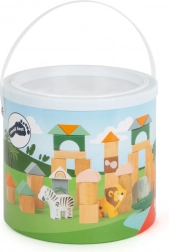 Set drvenih građevnih kocki Safari je savršena igračka za male istraživače. Sadrži 50 komada kocki u različitim oblicima i bojama, uključujući pastelne nijanse i prirodno drvo. U pakiranju se nalaze i 5 figurica safari životinja, uključujući zebru, lava, žirafu, slona i krokodila. Ovi elementi nude bezbroj mogućnosti za kreativno građenje. Kreativnosti nema kraja – sagradite kućice za životinje i stvarajte vlastite priče.