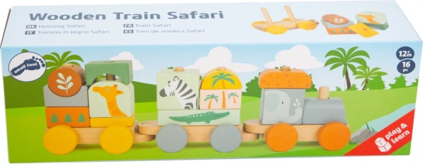 Drveni Safari vlakić je razigrani i edukativni pratitelj za djecu. Sastoji se od 1 lokomotive, 2 vagona i 13 dijelova koji se lako mogu kombinirati prema dječjoj mašti i kreativnosti. Svaki dio je ilustriran životinjskim motivima, što doprinosi razvoju maštovitosti i kreativnosti.