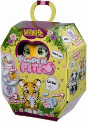 Otkrijte čaroliju sa simpatičnim tigrićem Pamper Petz! Ovaj interaktivni tigar s pelenom dizajniran je tako da djeca mogu otkrivati svijet njege o životinjama i doživjeti radost usvajanja svog novog prijatelja. Tigar posjeduje funkcije koje mu omogućuju piti vodu iz bočice i mokriti u pelenu koja mijenja boju prema vlažnosti.