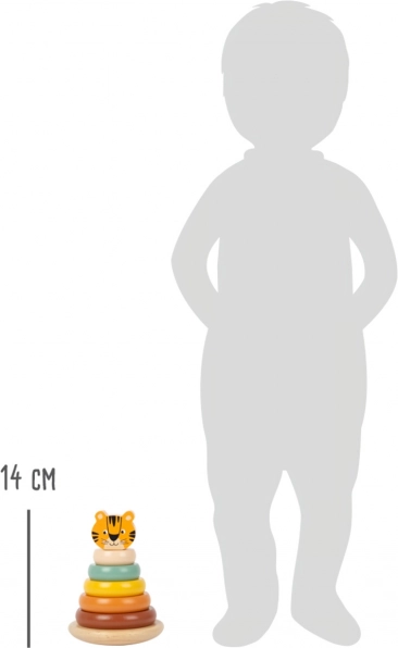 Ova impresivna slagalica s tigrovim motivom nije samo lijepa igračka, već i odličan alat za razvoj dječjih vještina. Sastoji se od 7 dijelova, uključujući bazu i šest šarenih prstenova koji se mogu staviti na štap završen tigrovom glavom. Na ovaj način djeca vježbaju koordinaciju ruke-oko i razumijevanje oblika.
