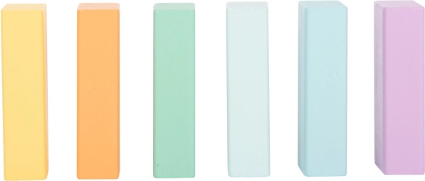Elegantna paleta boja pristaje dječjoj sobi pa kocke postaju i ukusna dekoracija. Set je dio proizvodne linije Pastel i ističe se visokim udjelom prirodnog drva u kombinaciji s nježnim bojama koje potiču mirnu igru bez preopterećenja osjetila.