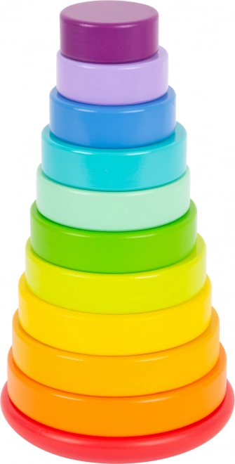 Uživajte u zabavnom slaganju s ovim drvenim tornjem za slaganje u bojama duge, koji potiče dječju motoriku i logičko razmišljanje.