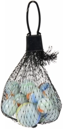 Staklene kuglice u mrežici nudimo u šest različitih boja, koje dodaju ljepotu i igru u svaku prostoriju. Pakiranje sadrži 20 kuglica promjera 16 mm i 1 veću kuglicu promjera 25 mm, što omogućuje različite mogućnosti igre i dekorativne upotrebe.