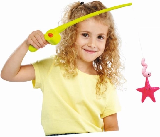Ova sjajna igračka pretvara svako kupanje ili dan kod dječjeg bazenčića u zabavan ribarski izlet. Dolazi sa štapom duljine 36 cm, koji je opremljen automatskim otpuštanjem užeta pri pritisku na gumb. Igra također uključuje tri morske životinje za lov koje dodaju raznolikost i zanimljivost cijeloj igri. Odličan izbor za djecu od 3 godine, koji razvija motoričke sposobnosti i koordinaciju očiju i ruku.