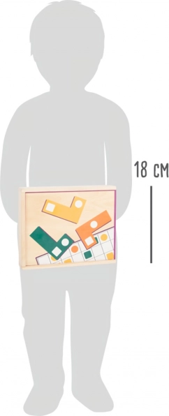 Ova drvena logička igra SMALL FOOT nudi djeci zabavne izazove i pametno učenje. Dijelovi s različitim otvorima umeću se na igraće kartice prema predlošcima, pa djeca uvježbavaju preciznost, strpljenje i strategiju slaganja. Zahvaljujući živim bojama i oblicima, igra je privlačna i lako razumljiva.