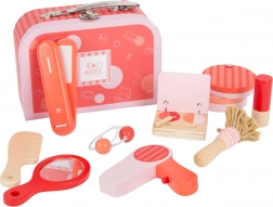 Ovaj kozmetički kovčeg za djecu marke Small Foot idealan je za male umjetnike i umjetnice koji vole igrati igre uloga i žele se osjećati poput odraslih. Set sadrži 10 različitih kozmetičkih pomagala izrađenih od kvalitetnog drva.