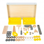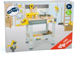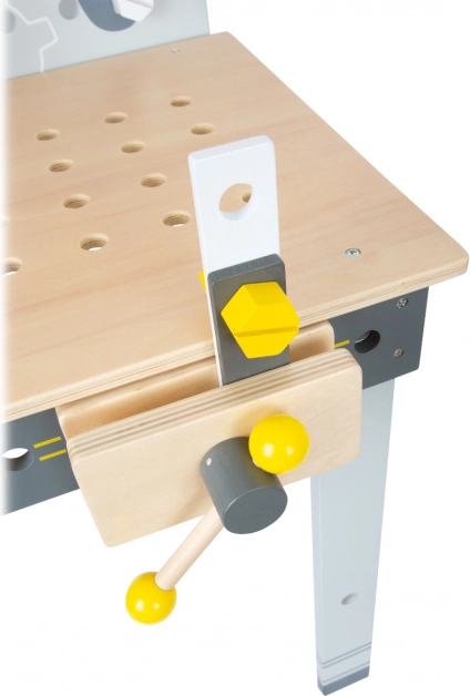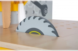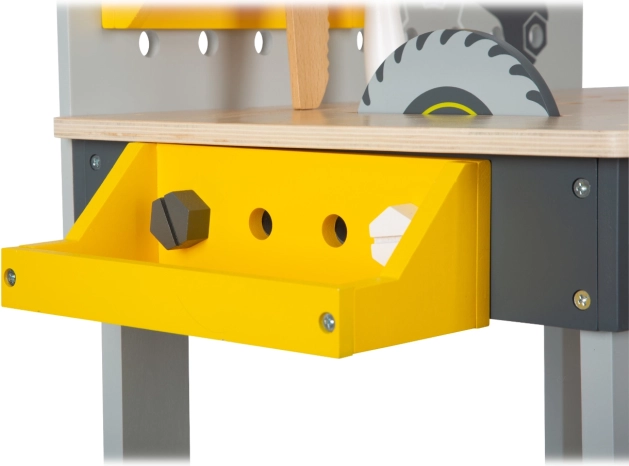 - Drveni alati: Osam jedinstvenih komada alata uključujući čekić, pilu, odvijač i još mnogo toga, pružaju djeci potpuni doživljaj pravog radioničkog okruženja.