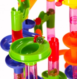 Ova mramorna staza omogućuje vam osmišljavanje i gradnju vlastitih labirinata od raznobojnih plastičnih dijelova. Kreirajte originalne konstrukcije, priređujte utrke i promatrajte kako kuglice jure kroz spirale, tunele i zavoje. Zahvaljujući intuitivnom spajanju djeca uče logičkom razmišljanju i rješavanju problema.