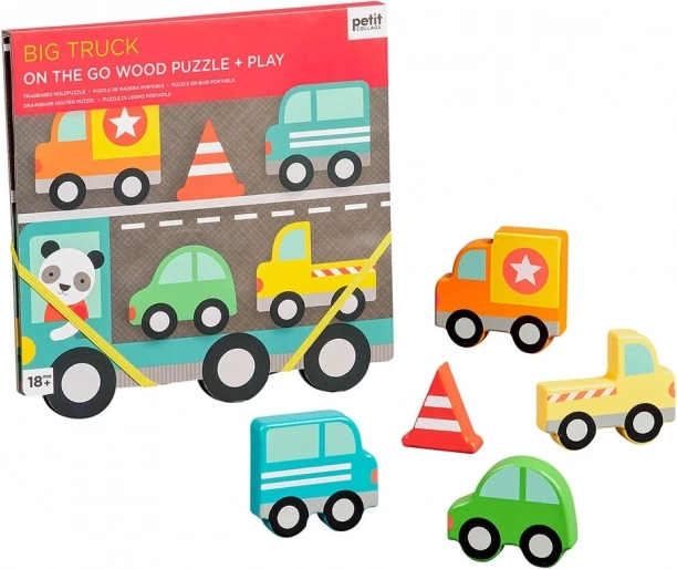 Robusna drvena slagalica za malu djecu s motivom velikog kamiona. Zabavna igračka koja potiče razvoj motoričkih vještina i kreativnog razmišljanja djece.