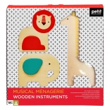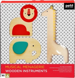 Preslatki set drvenih glazbenih instrumenata za najmlađe potiče ritam, sluh i finu motoriku. Sadrži žirafin guiro i dvije rumba kugle (slon i lav). Izrađeno od FSC drveta, tiskano bojama na bazi vode i isporučeno u reciklabilnom pakiranju; sigurno od 18 mjeseci.
