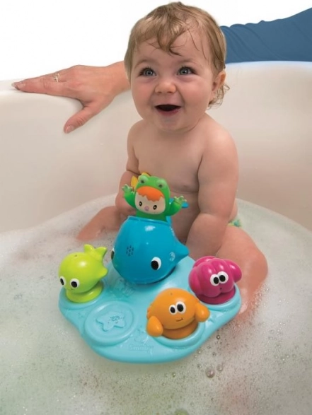 Unesite radost u svakodnevno kupanje s plutajućim otokom Cotoons. Ovaj razigrani otok idealan je za zabavu u kadi, sadrži šarene životinjice koje će razveseliti svako dijete, a najomiljenija je kit-velryba koja ujedno služi kao posudica za zalijevanje.