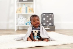 Praktično poklon-pakiranje s ilustracijama čini ga savršenim izborom za proslave i prvu bebi opremu. Dekica se lako pere u perilici, materijali su nježni prema osjetljivoj dječjoj koži i prikladni za novorođenčad.