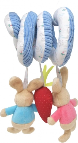 Zvečka spiralna Flopsy Bunny je plišana igračka koja će zabaviti vašu djecu bilo gdje. Na plavo-bijeloj spirali nalaze se zečići i crvena jagoda koje nude vizualne i taktilne podražaje.