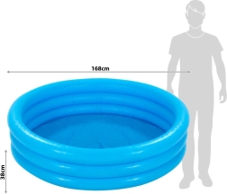 Napuhujući bazen Intex Crystal Blue idealan je izbor za vruće dane u vrtu. Zahvaljujući troprstenastoj konstrukciji stabilan je i udoban, a instalacija traje tek nekoliko minuta – dovoljno ga je razmotati na ravnoj podlozi, napuhati i napuniti vodom. Kvalitetni vinil s debljinom zidova 0,23 mm i dna 0,18 mm jamči izdržljivost i dug vijek trajanja.
