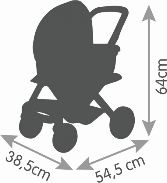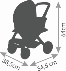 Robusne presvlake od plastične tkanine izdržljive su i jednostavne za održavanje – dovoljno ih je prebrisati vlažnom krpom. Okretni prednji kotačići i protubučni sloj na kotačima brinu za glatko, tiho i stabilno kretanje u domu i na otvorenom. Prikladno za lutke do 42 cm (lutka nije dio pakiranja).