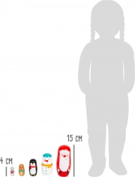 Preslatki set drvenih matroški s motivima Djeda Mraza, snjegovića, pingvina, jelena i medvjeda unosi u dom božićnu atmosferu. Djeca će uživati u zabavnom umetanju i slaganju, koje potiče finu motoriku i koordinaciju oko–ruka. Idealno kao božićna dekoracija i poklon za djecu od 3 godine naviše.