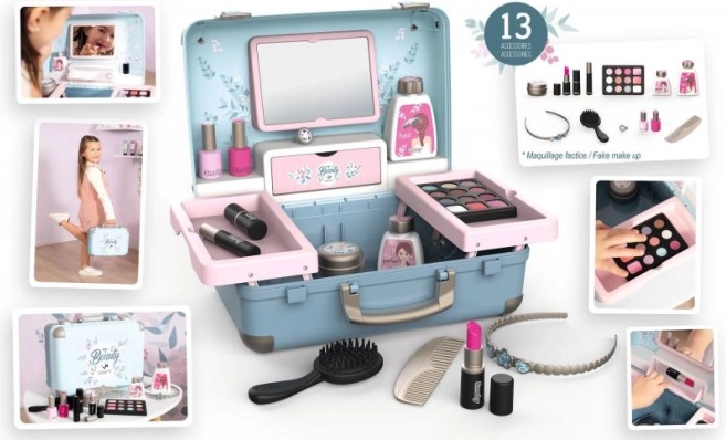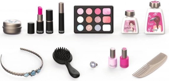 Otkrijte čaroliju igre salona ljepote s kozmetičkim kovčegom My Beauty Vanity. Ovaj prekrasan i funkcionalan kovčeg sadrži 13 imitacija kozmetičkih proizvoda kao što su ruževi za usne, lakovi za nokte, sjenila za oči, maskara i ostalo. Ne nedostaje ni češalj, ukosnice i razne bočice.