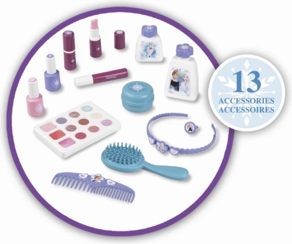 Ovaj set ljepote iz kolekcije Frozen idealan je za djecu koja vole isprobavati nove stvari i stvarati razne stilske izglede. Zahvaljujući kompaktnoj veličini i praktičnoj ručki, ovaj praktični set moguće je ponijeti bilo gdje. Sadrži: