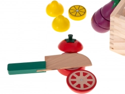 Ovaj drveni magnetski set za dječju kuhinju donosi realistično rezanje i guljenje bez opasnosti. Povrće prerežete sigurnim nožem, stavite na dasku, a nakon igre ga zahvaljujući magnetima lako spojite natrag. Djeca tako kroz igru usvajaju zdrave navike i razumiju princip magnetskog spajanja.
