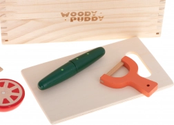 Set je odličan za samostalnu igru i zajedničko kuhanje s roditeljima: potiče koordinaciju ruka–oko, razvoj rječnika (nazivi namirnica, dijelova) i kreativnu ulogovnu igru. Estetski drveni sandučić pomaže održavati red i spreman je za brzo pospremanje.