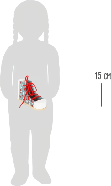 Ova drvena cipela marke Small Foot idealan je alat za djecu koja žele naučiti vezati vezice. S modernim dizajnom i šarenim uzorcima, djeca kroz igru poboljšavaju svoju koordinaciju i strpljenje. Zahvaljujući stabilnoj konstrukciji, cipela odolijeva pokušajima vezanja i prikladna je i za malu djecu u vrtićkoj dobi.