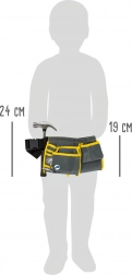 S ovim robusnim pojasom za alat djeca će svoje alate uvijek imati pri ruci. Set sadrži tesarski čekić, odvijače, metalni kutnik, zaštitne naočale, radne rukavice i druge pomagala. Idealan za male majstore.