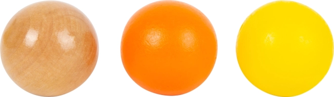 Tri glatke drvene kugle u privlačnim bojama potiču finu motoriku i sigurno držanje bez rizika od gutanja.