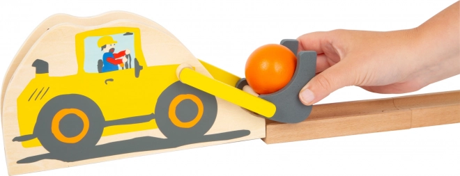 Ova drvena kuglična staza s građevinskom tematikom donosi djeci od 18 mjeseci puno dinamične zabave. Dijelovi se lako slažu, pa kugle mogu odmah krenuti na stazu. Jednostavan, pregledan dizajn ne preopterećuje osjetila i potiče koncentraciju te promatranje kretanja.