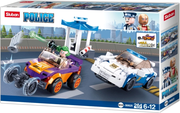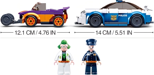 Set sadrži dva vozila - bijelo-plavi policijski auto i originalni šareni auto, također s navijaćim mehanizmom. Svaki auto ima jedinstvene detalje, dizajn i veličinu, omogućujući bezbroj scenarija igre.