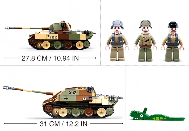 Ovaj detaljan građevni set spaja realističan izgled vojne tehnike s razigranom konstrukcijom. Zahvaljujući izvedbi 2u1 možete birati između dviju varijanti tenka u kamuflažnom dizajnu i tako proširiti mogućnosti igre. U kompletu su 3 figurice, uključujući strijelca s bazukom, za još dinamičnije priče.